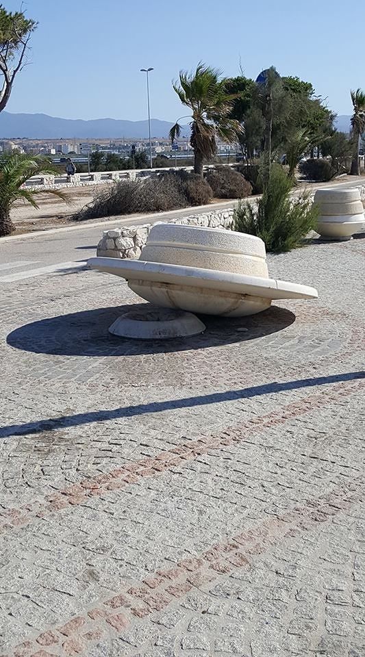 Gli incivili colpiscono ancora. Forse finita la serata, annoiati, hanno sradicato una panchina circolare della passeggiata al Poetto di Quartu, di fronte al Beer Beach, speriamo non passi molto tempo per rimetterla a posto.