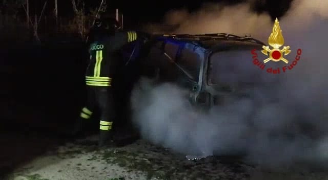 Intervento dei Vigili del Fuoco intorno alle 20 di ieri per l’incendio di un’auto abbandonata in un’area rurale di via Dei Mandorli,