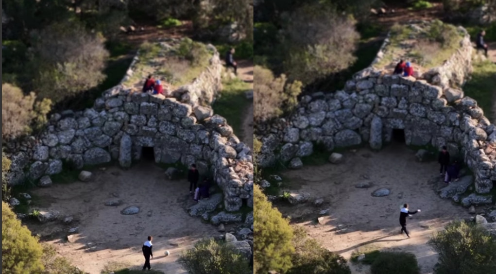 “uno dei monumenti candidati al riconoscimento UNESCO” commenta Fabrizio Pinna che, con la moglie Alessandra Cossu, sono famosi in tutto il mondo per le immagini scattate agli antichi resti della civiltà sarda. Un oltraggio, quello mostrato, contro l’arte, la storia e la cultura di un popolo, contro quel patrimonio che è giunto sino a noi e che conserva maestosità e potenza, che non sono ancora del tutto svelate, e presenta quel mistero tutto da scoprire, valorizzare e tutelare. Ma non tutti riconoscono evidentemente questa ricchezza e, dopo le grigliate che, tempo fa, occuparono la cronaca locale, ora è il turno delle partite a pallone, “un luna park”.
