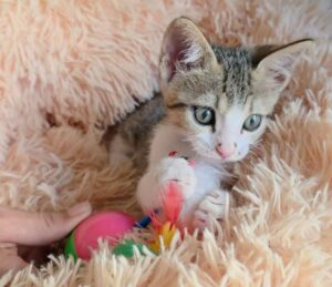 È un’ opera d’ arte, tenerissima e bellissima, è stata recuperata in un giardino condominiale quando aveva 14 giorni di vita.