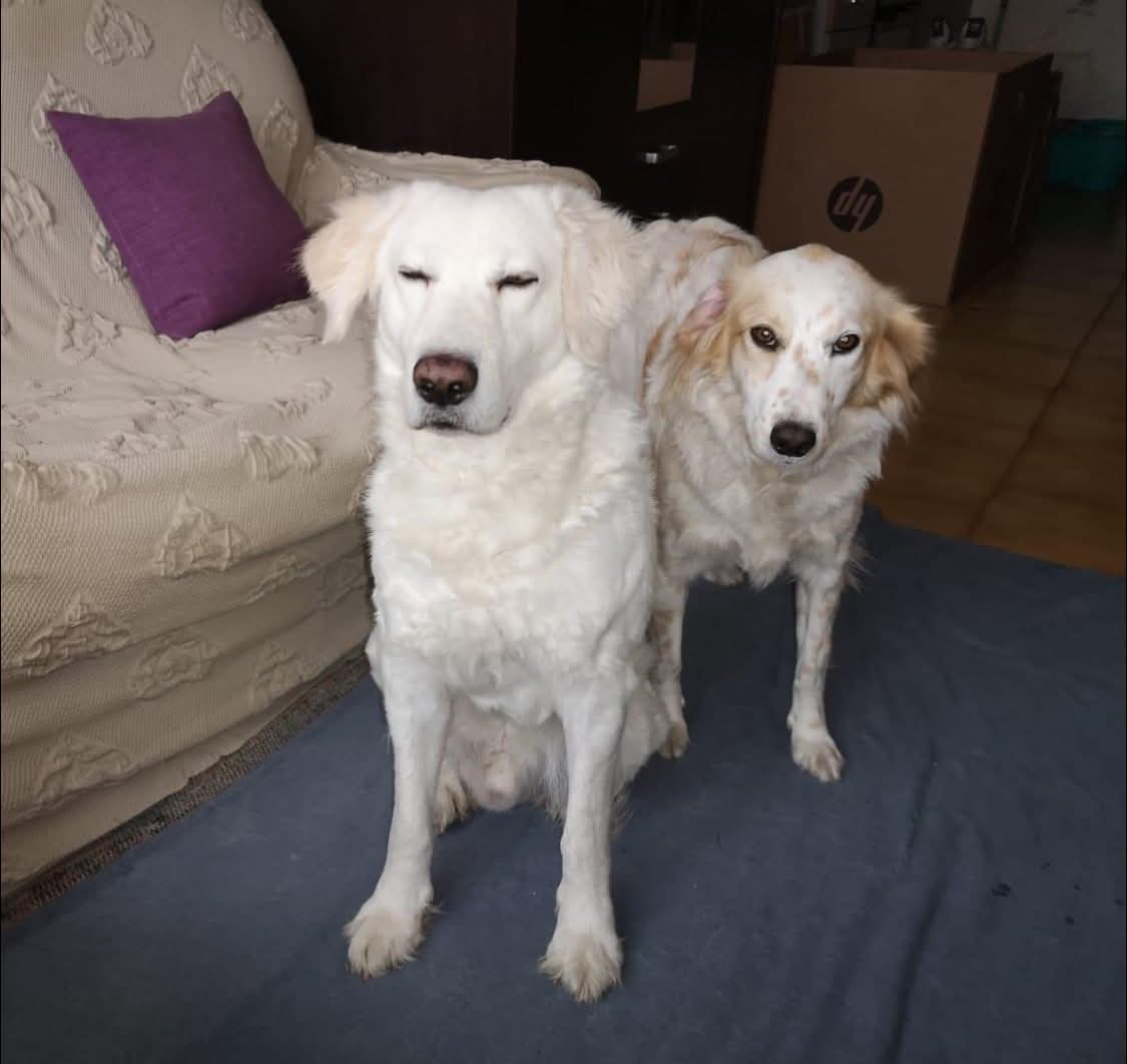 Ma oggi rischiamo di tornare in quell’inferno chiamato canile, perché il nostro Papi si è ammalato gravemente e non riesce più nemmeno a portarci a spasso. I volontari non hanno nessun posto, la situazione è sempre più delicata perchè noi dobbiamo lasciare questa casa e il nostro papà. Siamo un maschio e una femmina stupendi, due anni, abituati alla vita in casa, la femmina è sterilizzata, sani e dolcissimi, ben educati, taglia medio contenuta.