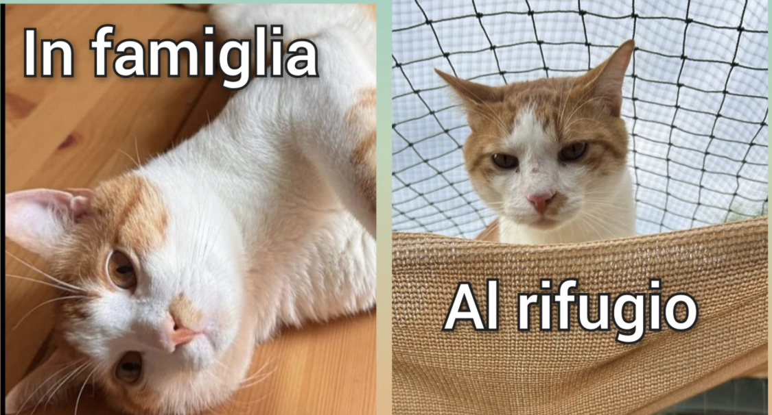 Lui una casa ce l’aveva ma la sua precedente famiglia ha dovuto rinunciare a lui per gravi motivi. Ora vive in un rifugio, amato e coccolato, ma un rifugio, per quanto le volontarie cerchino di riempire le giornate dei mici e siano meravigliose, è comunque un luogo non adatto a lui, che ha conosciuto il calore di abbracci, notti sotto le coperte con la sua mamma e grattini sul divano. Il micio è sofferente e triste, si aggrappa a ogni piccola carezza che riesce a strappare alle tate.
