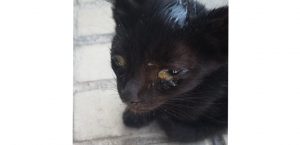 Il gattino era inerme, non aveva la forza di camminare, è stato spostato all’ ombra, ma purtroppo non potendo pagare le spese veterinarie lo hanno lasciato sul marciapiede.