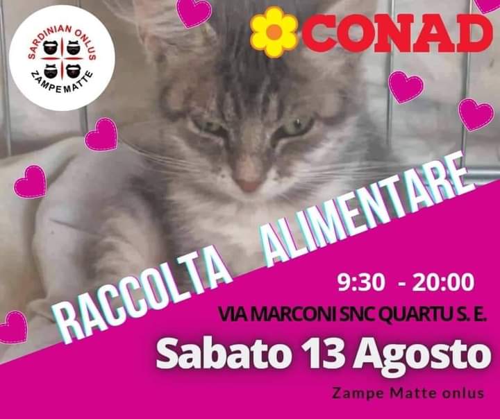 Sabato 13 agosto, presso il Conad di via Marconi a Quartu Sant’Elena, ci sarà la giornata della raccolta alimentare, dalle 9.30 alle 20.