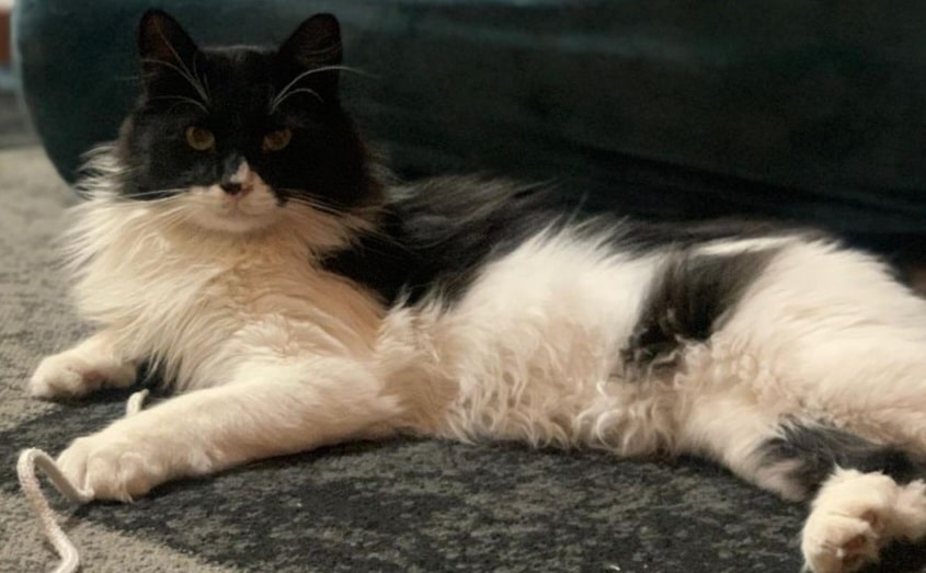 Silvestro è un gatto maschio bianco e nero con il pelo semi lungo, castrato.