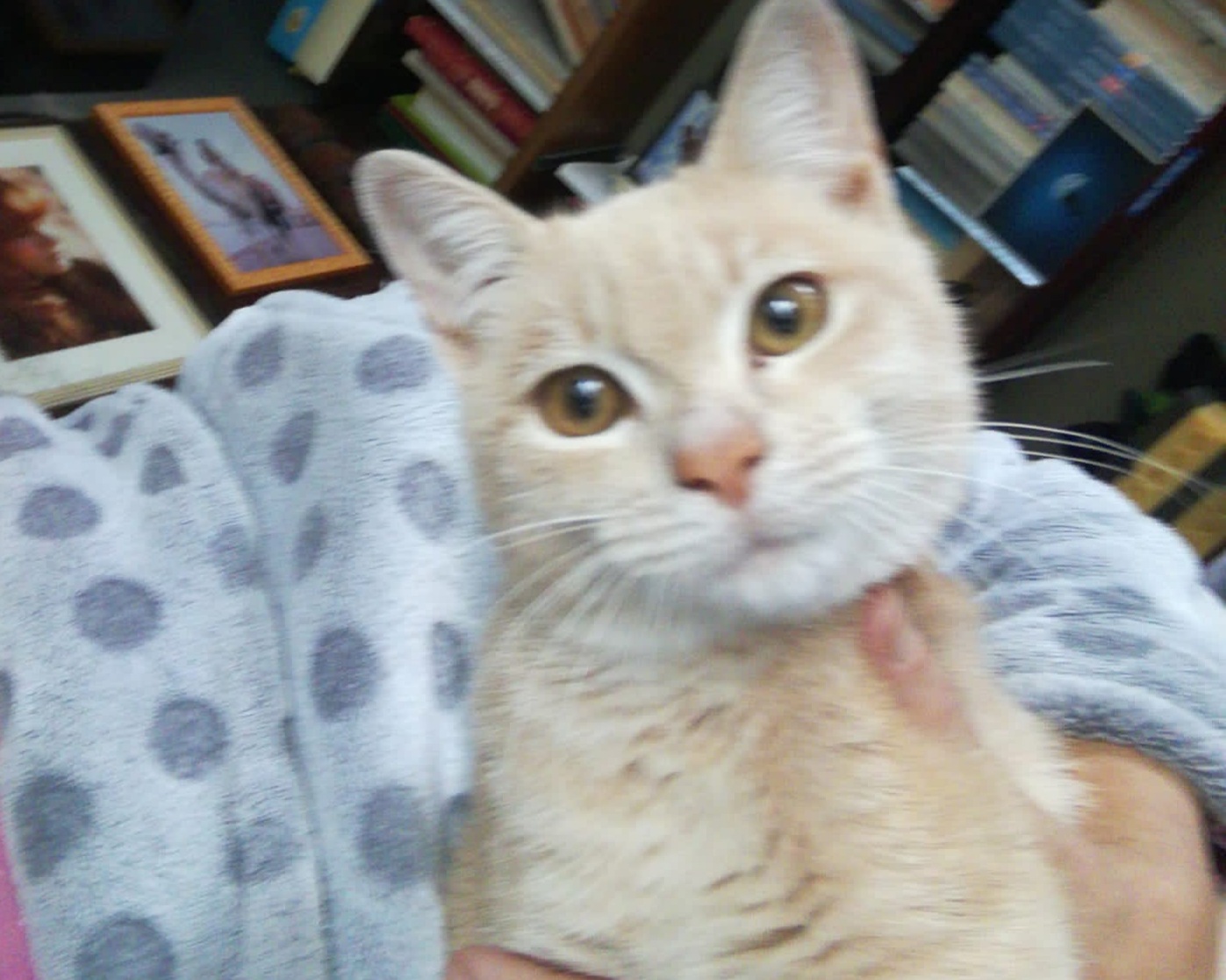 Vi presento il più debole, Mielino, carattere docilissimo e socievole di circa quattro mesi, maschio non sterilizzato. Gli è stata amputata la coda, dalla sera all’ indomani la sua coda aveva perso il pelo, e parte del derma, come se lo avessero scuoiato vivo. Adesso è in convalescenza per altri venti giorni.