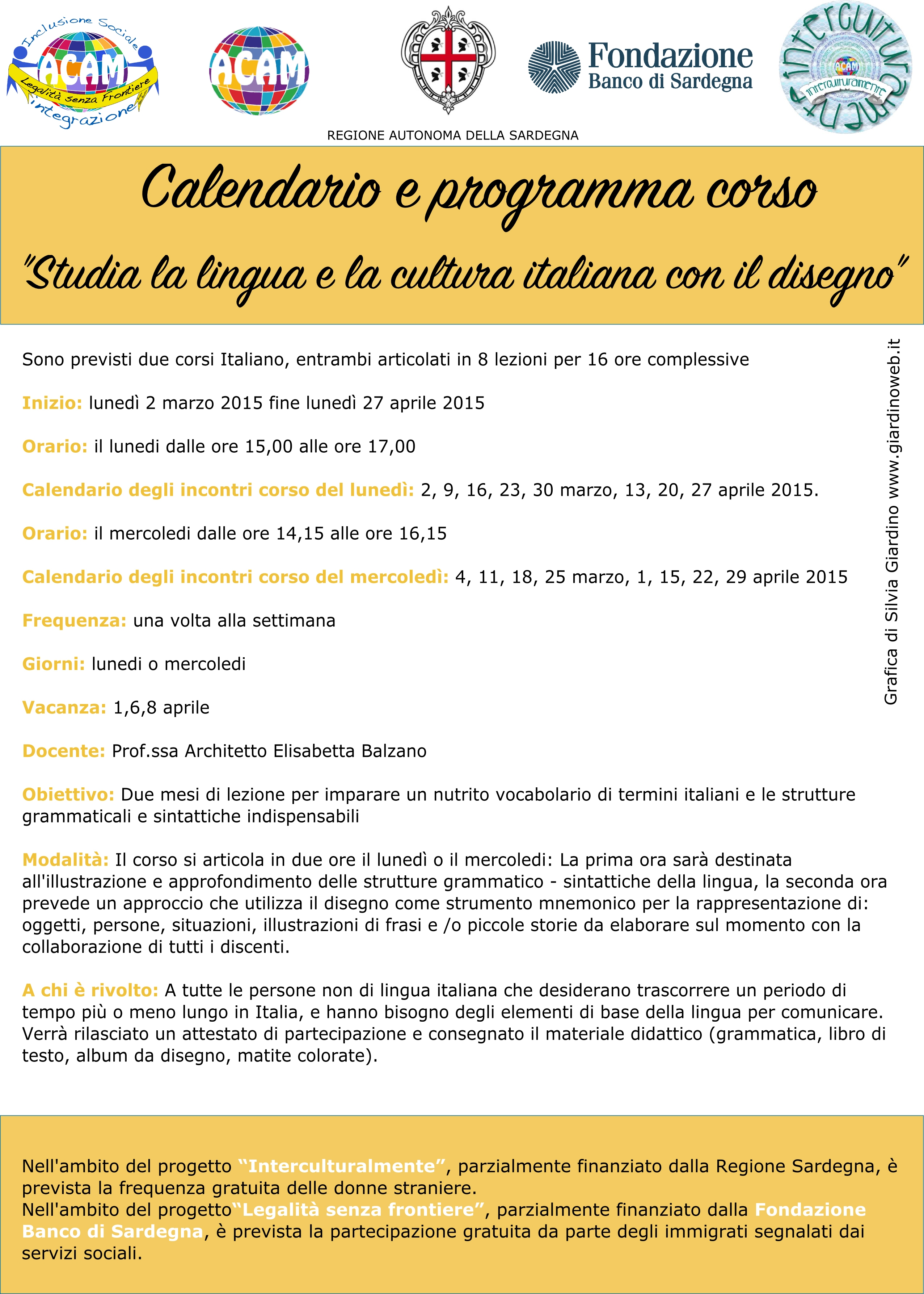 Si promuove il corso “Studia la lingua italiana con il disegno”, che ha come obiettivo quello di insegnare un nutrito vocabolario di termini italiani e strutture grammaticali e sintattiche per tutte le persone non di lingua italiana che desiuderano trascorrere un periodo in Italia. Verrà rilasciato un attestato