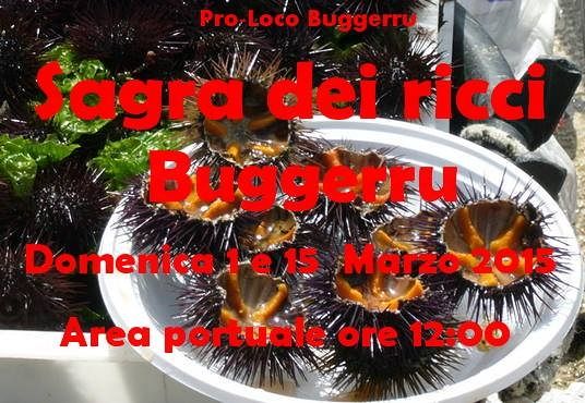 La Pro-Loco Buggerru , dopo il grande successo dell’anno scorso con oltre 6000 mila presenze , rinnova l’evento della Sagra dei ricci domenica 1 e 15 marzo 2015 a Buggerru , si svolgerà nell’area portuale di Buggerru .