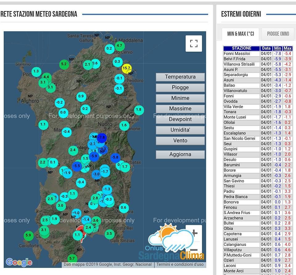 Ecco le temperature nel dettaglio diffuse dalla pagina Sardegna Clima Onlus, il portale sardo