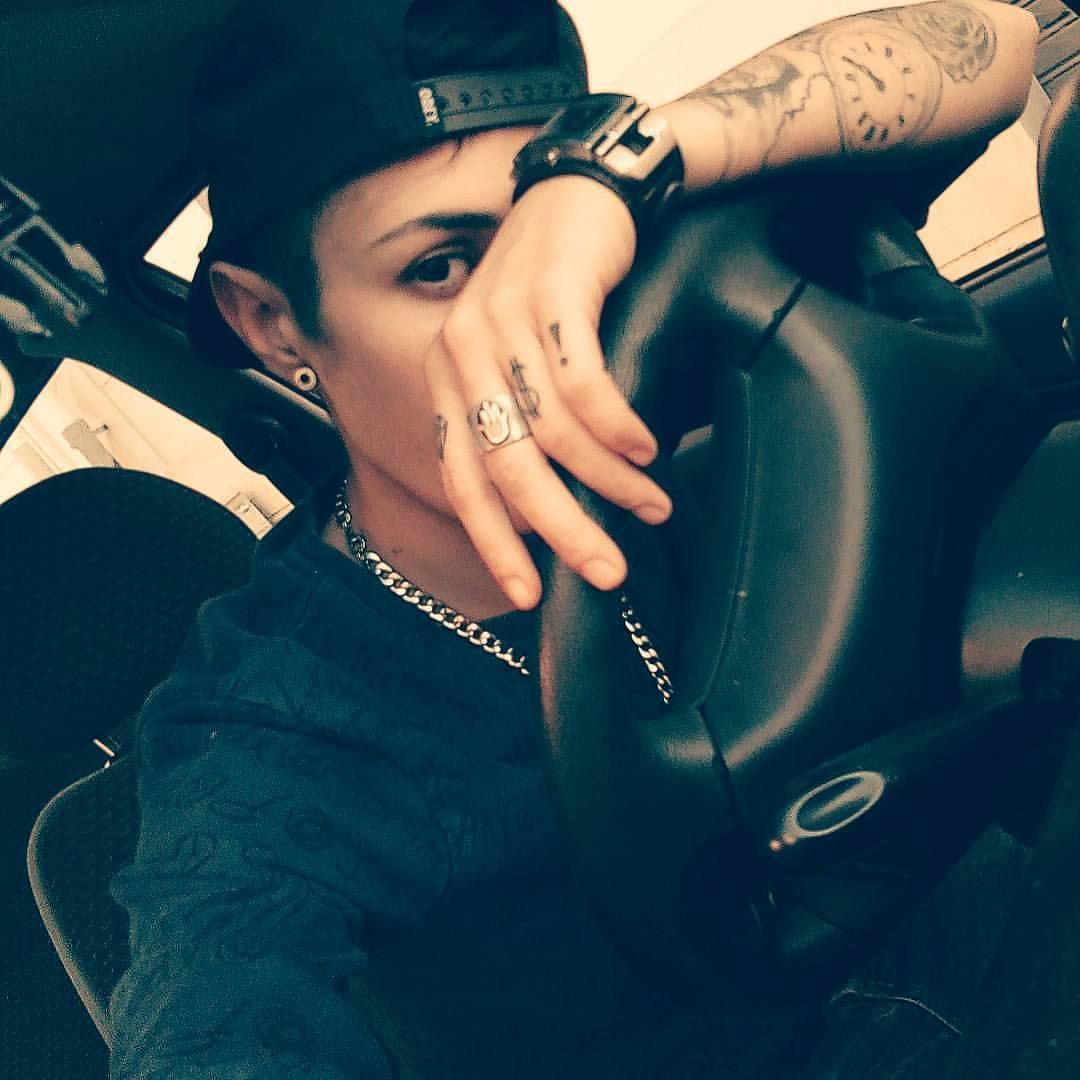 Corpo minuto, capelli corti e abiti mascolini. Il look di Roberta è, a prima occhiata, un po’ da bullo, con diversi tatuaggi a vista e il capellino girato all’indietro.