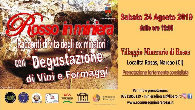 Nell’esclusiva cornice della Miniera di Rosas, l’Associazione Miniere Rosas organizza la quinta edizione di Rosso in miniera, l’evento che unisce la cultura mineraria con quella enogastronomica. Sabato 24 agosto dalle 19:00 i minatori racconteranno la loro vita e il loro lavoro all’interno della galleria Santa Barbara con imperdibili testimonianze dal passato, tra gioie e fatiche, accompagnando i visitatori indietro nel tempo.