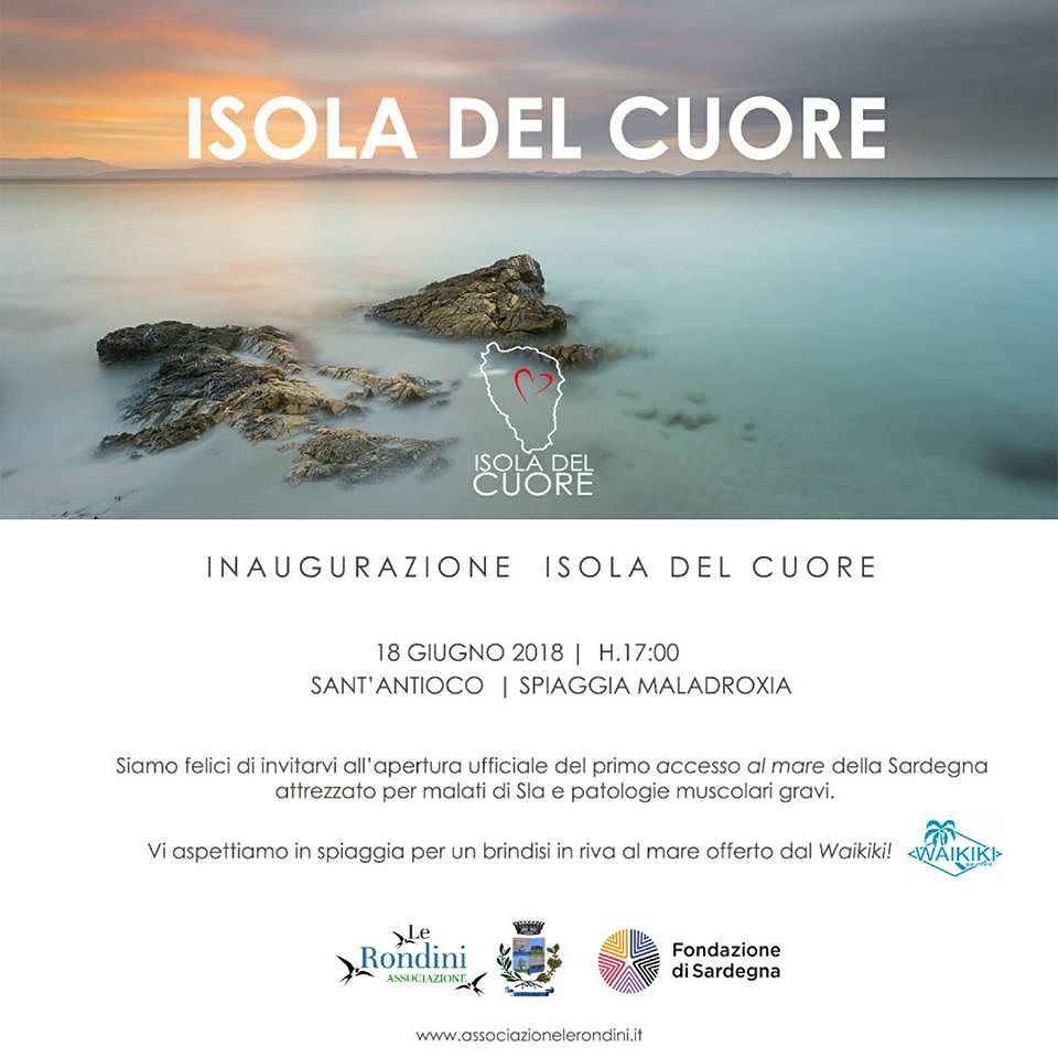 Associazione “Le Rondini”: «Siamo felici di inaugurare il primo accesso al mare della Sardegna attrezzato per tutti i nostri amici e parenti affetti da Sla e patologie muscolari gravi. Lunedì 18 giugno alle 17.00 sarà un momento in cui poter raccontare il nostro percorso e brindare insieme al grande risultato raggiunto, ringraziando con il cuore tutti coloro che ci hanno aiutato a realizzare questo grande sogno». Per ulteriori informazioni si rimanda al sito www.associazionelerondini.it.