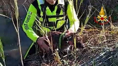 I Vigili del fuoco del Comando di Cagliari sono intervenuti nel primo pomeriggio di oggi giovedì 5 dicembre, nella strada Statale 387 all’altezza del Km 23,400 per soccorrere un cane finito in un canneto all’interno di una cava.