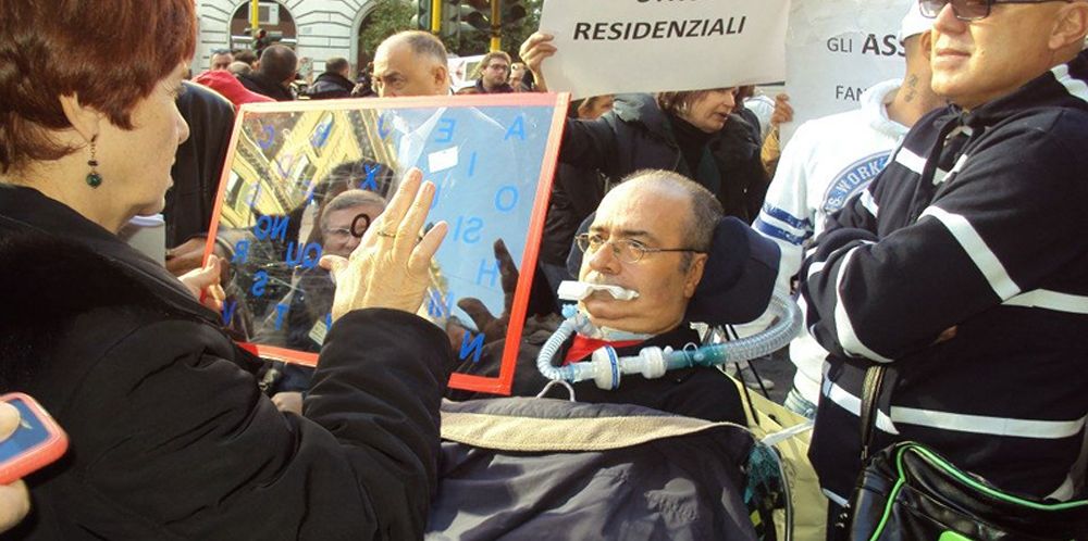 Potevo decidere di non fare la tracheostomia 5 anni fa, sarei morto, ho scelto la vita per lottare. LA MIA VITA NON MI APPARTIENE, appartiene ai malati silenti, ai depressi, a chi non puo difendersi, a chi è stanco di protestare, a chi è stanco di vivere in uno stato che trascura i bisogni degli ultimi. Nel 2008 avevamo 3 miliardi nel sociale, nel 2013 600 milioni strappati l’anno scorso a rischio della vita.