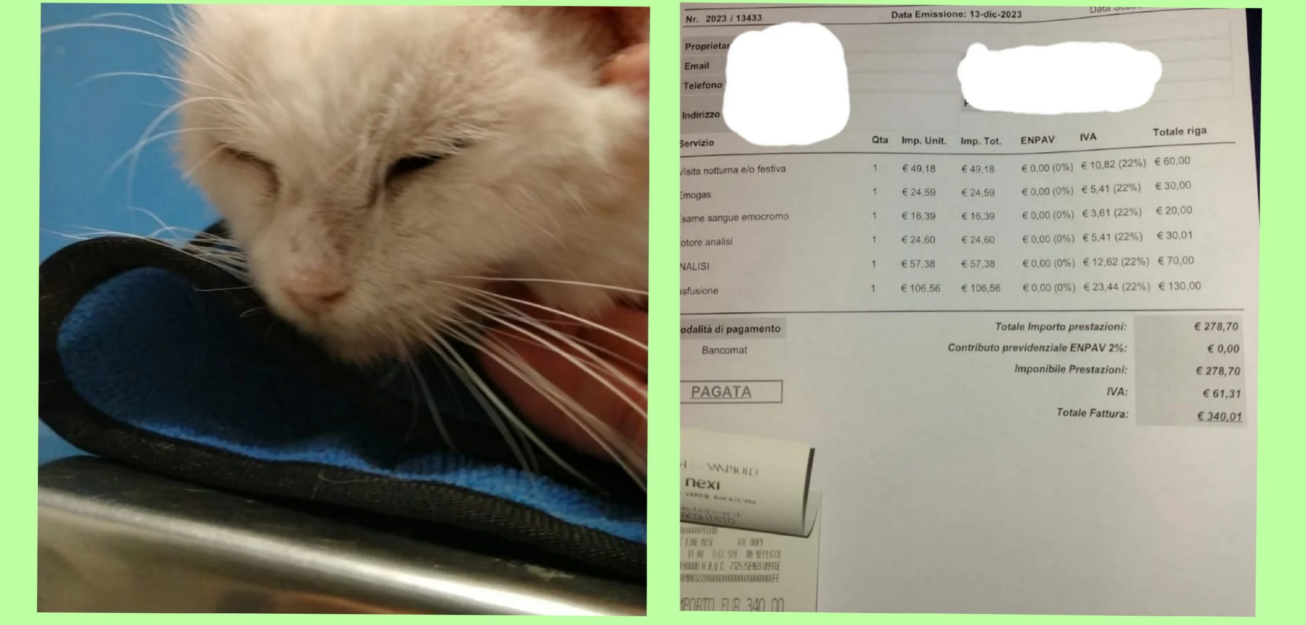 Apriamo una raccolta fondi per coprire una prima fattura di 340€ + 55€ al giorno per il ricovero.