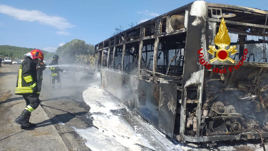 Paura a San Basilio per un bus di linea che è stato divorato dalle fiamme sulla Provinciale 24. Tutti i passeggeri si sono messi in salvo, scappando dal pullman già dopo aver visto le prime fiammate. Sul posto sono intervenuti i vigili del fuoco del comando provinciale di Cagliari, che sono riusciti a spegnere il rogo quando, però, tutto il mezzo era già stato distrutto.