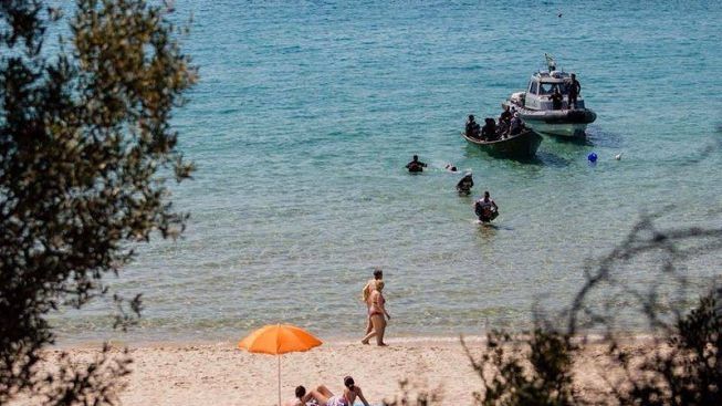 A Santa Margherita i clandestini sbarcano sotto gli occhi dei turisti e dei bagnanti. A poca distanza dall’Abamar, a due passi dal lussuoso Forte Village. Una ventina di algerini, tutti uomini, sette dei quali nel pomeriggio erano ancora ricercati dalla Finanza mentre in tutto il territorio si sentono gli elicotteri. Uno sbarco inatteso, in un luogo insolito. Disperati in cerca di una speranza, in venti su un barcone, per quella che fortunatamente non è stata un’avventura senza lieto fine. Nellafoto molto bella scattata oggi da Romina Urru, il momento esatto dell’arrivo dei clandestini a Pula, in mezzo ai turisti. Eccoli mentre scendono in acqua, vestiti, alla ricerca di un sogno, in fuga dalla propria terra. Intorno alle 16 i sette clandestini ancora in fuga sono stati rintracciati e fermati dalla Finanza a ridosso della statale 195.