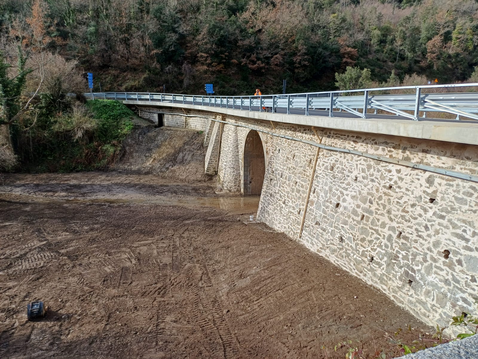 Sono state portate a termine le lavorazioni della parte muraria della volta e delle spalle del ponte. Il risanamento è stato eseguito mediante l’utilizzo di specifiche malte di calce che garantiscono il riempimento dei vuoti interni e l’impermeabilizzazione della struttura.