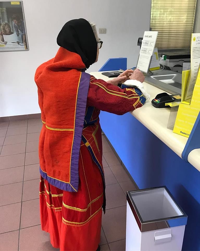 La foto del giorno di Cagliari Online è stata pubblicata dal sindaco Luigi Littarru, e ritrae un’anziana donna con il costume del suo paese all’ufficio postale. Storie che fanno notizia, anche perché ormai è raro vedere usato nel quotidiano l’abito sardo, ormai indossato solo nelle occasioni di festa. C’è ancora chi difende l’orgoglio della tradizione.