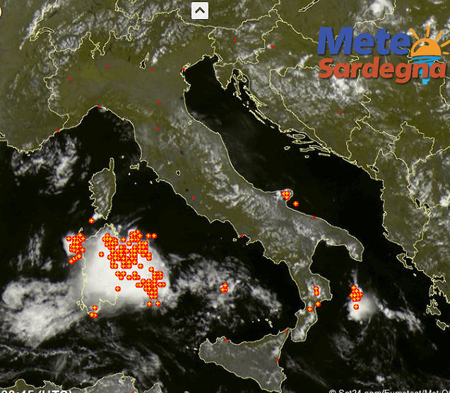 Osservando l’immagine del MeteoSat sembra quasi che sia un’unica enorme nube temporalesca. Attenzione perché l’instabilità è destinata ad acuirsi nelle ore centrali della giornata, quindi a breve, puntando con decisione da nordest verso sudovest. Verranno pertanto coinvolti anche i settori meridionali della Sardegna ed è proprio qui – per i contrasti termici più violenti che potrebbero generarsi – che i modelli matematici suggeriscono le precipitazioni più violente. Lo ripetiamo, potranno svilupparsi nubifragi e violentissime grandinate”. Tutti gli aggiornamenti con foto su www.meteosardegna.it.
