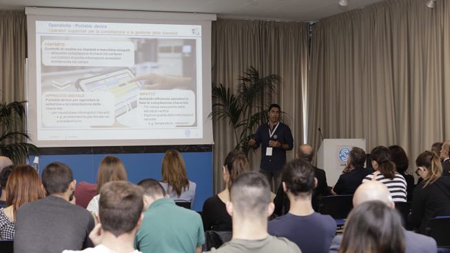 Organizzazione del lavoro: Per rendere questo processo fluido ed efficace, è stato adottato il metodo “agile” calato in un contesto inusuale, rispetto alla tradizione del settore. Uno spazio, quello del laboratorio Industry 4.0 di Sarroch, sede dell’Open day, capace di agevolare la collaborazione tra professionalità: dagli ingegneri di processo ai capiturno, passando per gli addetti alla sicurezza, sfruttano gli spazi comuni, le sale riunioni attrezzate con telecamere e maxi-schermi touchscreen, la stand up meeting room, per lavorare assieme.