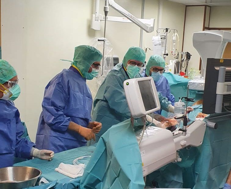«Durante l’intervento – riprende Michele Portoghese – ci siamo avvalsi dell’assistenza tecnica di due bioingegneri presenti nelle loro sedi di Milano e Roma. Ed è proprio questa la novità, perché mentre noi da Sassari eseguivamo fisicamente l’intervento, i due bioingegneri ci seguivano e ci assistevano da remoto con uno specifico supporto tecnico».