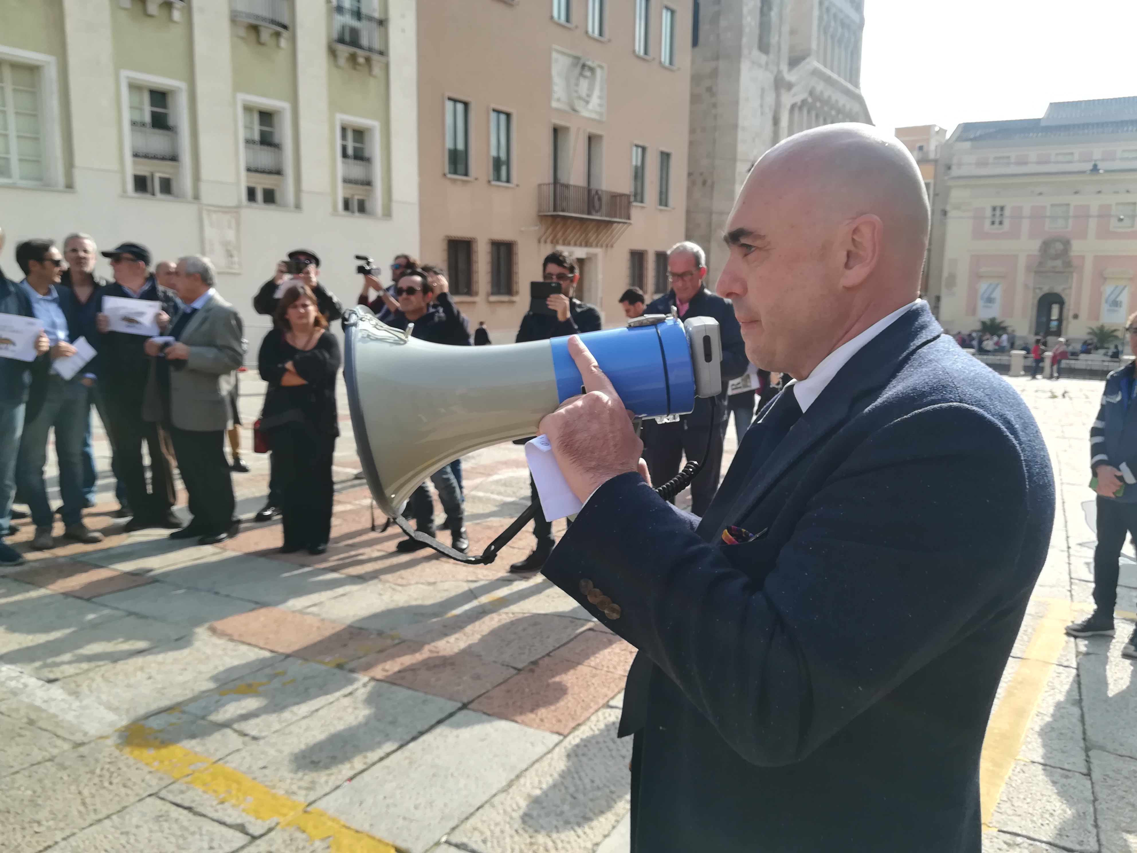 Birocchi parla di “un attacco ai giornalisti, ormai ci sono politici che pensano di dialogare direttamente con il popolo saltando il passaggio della stampa. È inaccettabile, continueremo a combattere tutti i princìpi illiberali”. Presenti anche vari politici: l’assessore regionale del Bilancio Raffaele Paci e il sindaco di Cagliari Massimo Zedda, oltre a Cgil, Cisl e Uil e a don Marco Lai della Caritas.