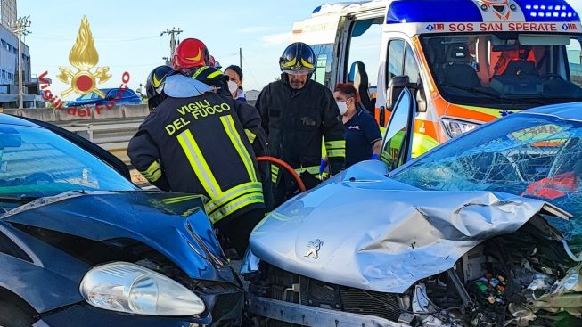 Intervento dei Vigili del Fuoco in corso dalle 17 per incidente stradale sulla strada complanare adiacente alla Statale 131 all’altezza del km 15.400 in territorio del comune di San Sperate, direzione Sassari, dove per cause ancora da accertare, due autovetture sono rimaste coinvolte in uno scontro frontale.