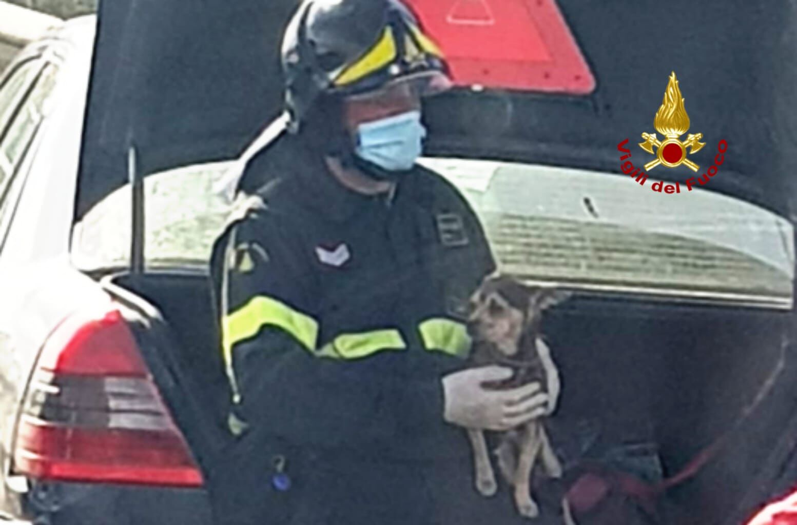 I Vigili del Fuoco hanno anche recuperato sano e salvo un cagnolino da una delle auto coinvolte.