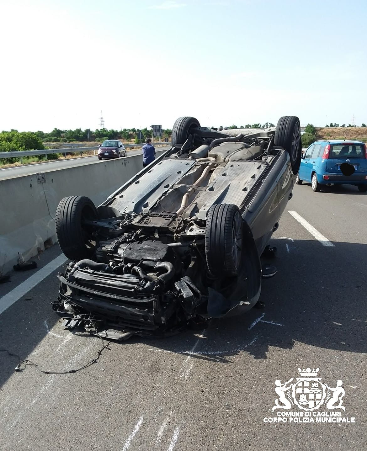 Una Golf guidata da un 21enne di Cagliari residente a Dolianova, si è scontrata lateralmente con una Land Rover Freelander guidata da una 48enne residente a Sarroch. Per effetto dell’urto la Golf, dopo aver colpito il guard rail, si è ribaltata e il suo conducente è rimasto ferito in maniera non grave. E’ stato soccorso da un’ambulanza del 118 e trasportato all’ospedale Marino in codice giallo. La conducente della Rover invece è rimasta incolume. E’ probabile che l’incidente sia stato causato da un cambio improvviso di corsia di uno dei due veicoli.