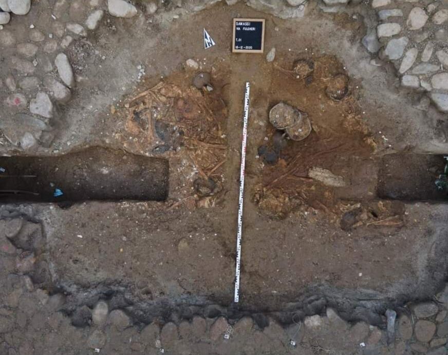 Scoperta di una tomba collettiva a Samassi: resti scheletrici di un numero notevole di individui, accompagnati da diverse forme ceramiche, oggetti d’ornamento personale, elementi litici e alcuni reperti metallici. L’eccezionale ritrovamento è accaduto durante gli scavi per la realizzazione della rete del gas.