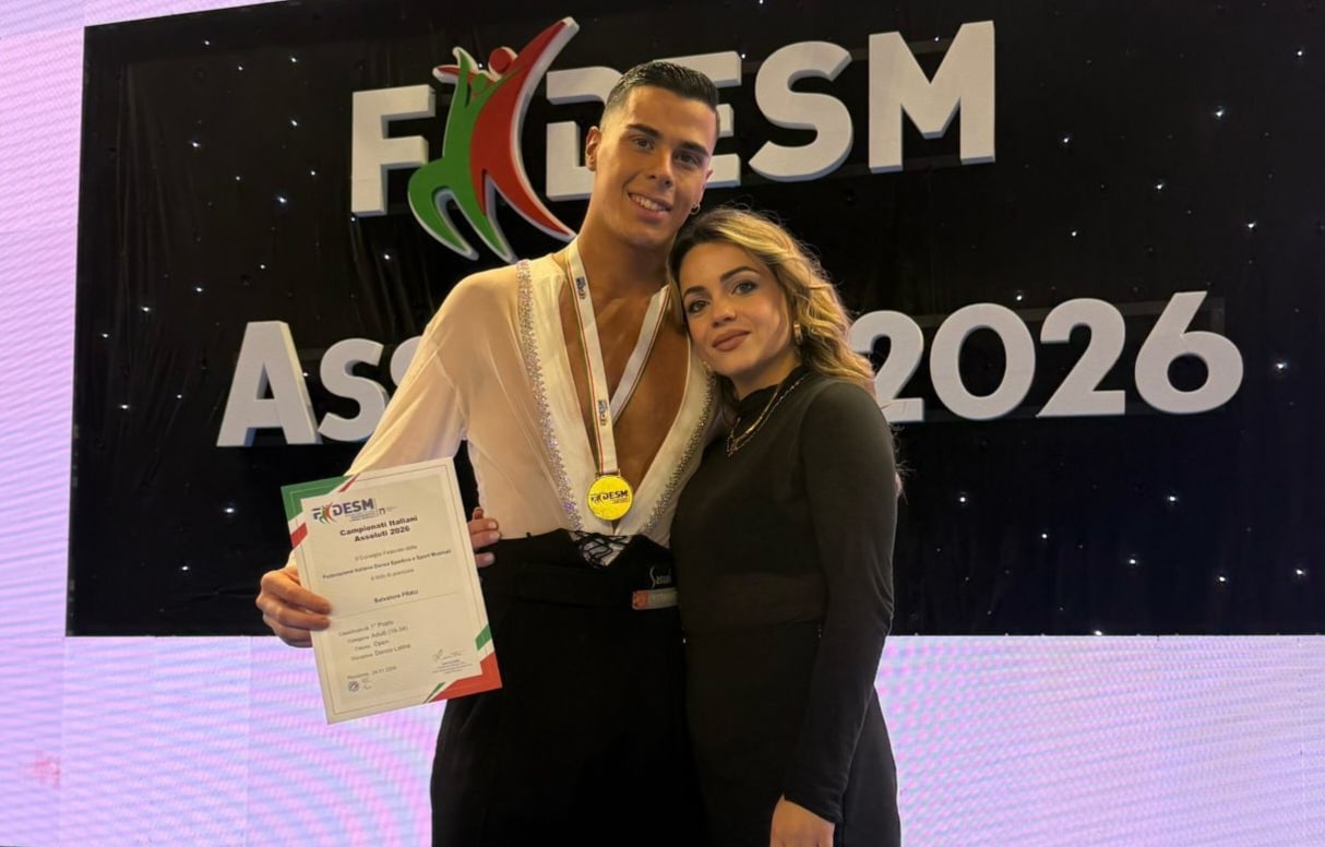 Selargius, campionati Italiani Assoluti FIDESM 2026: Salvatore Frau, 23 anni, si riconferma Campione Italiano Assoluto nel Solo Latin maschile 19/34 classe U, entrando ufficialmente a far parte del Club Azzurro 2025/2026 della Nazionale Italiana di Danza Sportiva.