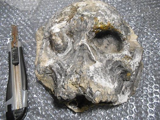 bastone, anch’esso fossilizzato, conficcato nell’orbita destra del teschio. Realizzai allora di avere per