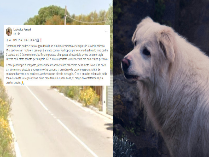 “Domenica mio padre è stato aggredito da un simil maremmano a Selargius in via della Scienza. Mio padre era in moto e il cane gli è andato contro. Purtroppo per cercare di schivarlo mio padre è caduto e si è fatto molto male. È stato portato di urgenza all’ospedale, aveva un’emorragia interna ed è stato salvato per un pelo. Gli è stata asportata la milza”. A raccontarlo una ragazza, Ludovica Ferrari, che ha raccontato tutto in un gruppo pubblico Facebook di Selargius. Il suo appello-denuncia ha raccolto centinaia di condivisioni e c’è anche chi ha screenshottato il post, facendolo girare sui social e sugli smartphone. “Il cane purtroppo è scappato, probabilmente anche ferito dal coloro della moto. Non si sa di chi sia. Vorremmo giustizia e vorremmo che ognuno si prendesse le proprie responsabilità. Se qualcuno ha visto o sa qualcosa, anche solo un piccolo dettaglio. O se a qualche volontaria della zona è arrivata la segnalazione di un cane ferito in quella zona, vi prego di contattarmi al più presto, grazie”.