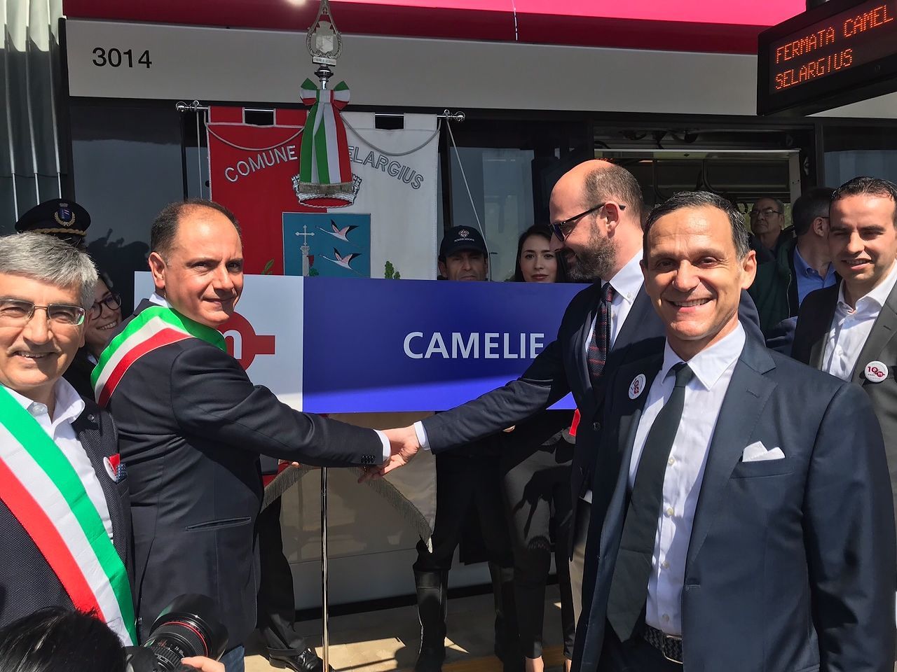 Partenza da piazza Repubblica e arrivo a Settimo, dopo la tappa a Selargius, per il taglio del nastro. Doppia festa in casa Arts, che questa mattina ha festeggiato i primi dieci anni di MetroCagliari con l’immissione in servizio di tre nuovi tram e l’inaugurazione della fermata Camelie.