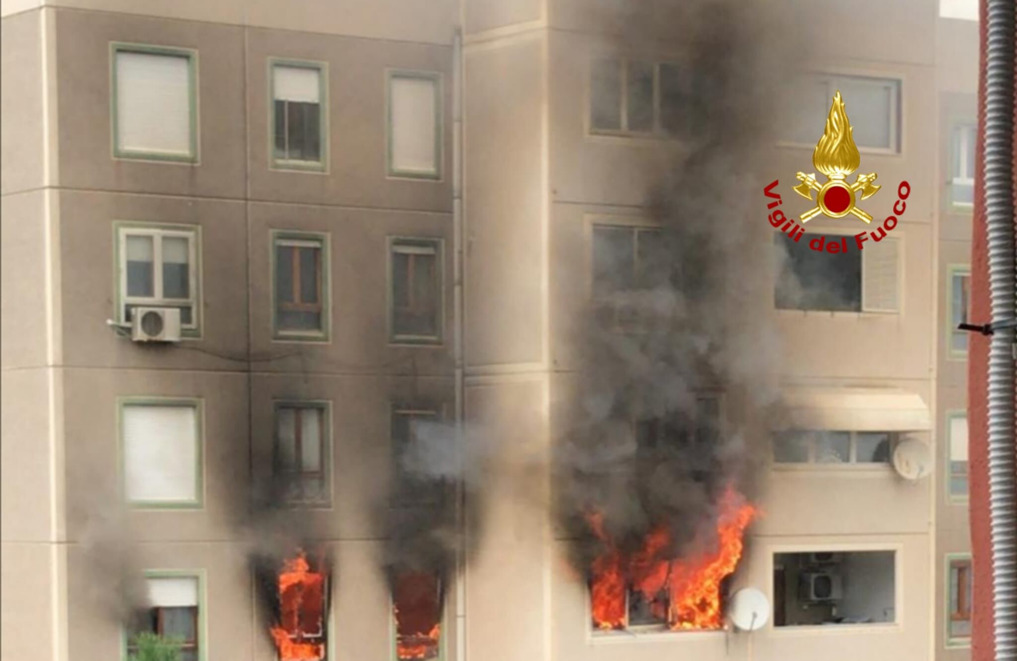 Intervento in corso per un vasto incendio di un’appartamento al terzo piano di una palazzina nel quartiere di “Su Planu”
