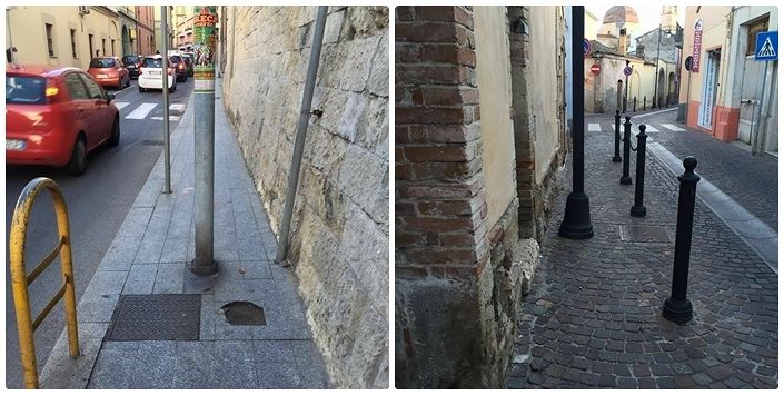 Ancora ostacoli, barriere architettoniche o comunque “elementi che di fatto impediscono il passaggio di carrozzine per disabili o passeggini. Sono gli stessi cittadini di Selargius a segnalare al nostro giornale, una situazione paradossale: le due foto allegate, mostrano l’attuale situazione in via Roma, la strada che dall’incrocio principale conduce poi alla S.S. 554 ma anche in via Dante, la strada dove c’è il comando di Polizia Municipale locale. Ad occhio nudo si intuisce che è difficoltoso far transitare i pedoni in questi “marciapiedi”, figuriamoci poi trasportare un neonato o un portatore di handicap. Un monito per il Comune, che si spera in tempi brevi possa metter fine a questo disagi quotidiani. Continuate a segnalarci con foto e testo quel che accade in città e nell’Area Vasta: 342/0428755 WhatsApp in diretta con il vostro giornale “Dillo a Casteddu”.