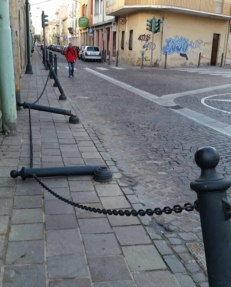 Il mistero dei pali rovesciati a Selargius. I cittadini della via Manin si sono risvegliati stamane con una sorpresa inaspettata: i pali che delimitano il marciapiede sono stati rovesciati sull’asfalto. Ma nessun abitante della zona ha sentito l’impatto con un automezzo e sulla strada non sono presenti detriti. Dunque, si è trattato di un atto vandalico o di un incidente stradale?