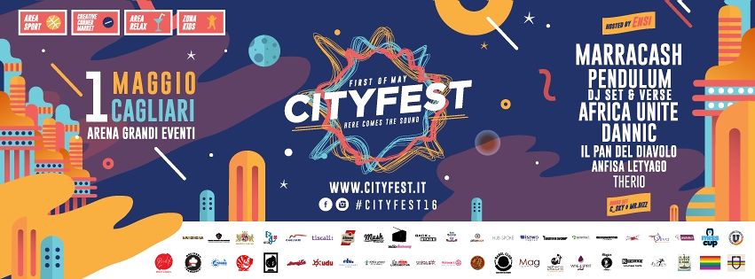 Il 1 maggio Cagliari vibrerà sulle note del CityFest 2016. A due passi dal mare, in una location che ha già regalato festival e serate al capoluogo cagliaritano, si esibiranno artisti conosciuti in tutto il mondo e big della scena italiana: Pendulum, Dannic, Marracash, Ensi, Africa Unite, Pan del Diavolo, TheRio e Anfisa Letyago: «Cityfest non sarà solo musica – affermano due dei promotori della kermesse, Federico Manca e Francesco Contu – saranno disponibili attività collaterali sportive e d’intrattenimento, per i più piccoli ci sarà inoltre un’area ricreativa gestita da Super Animatori».