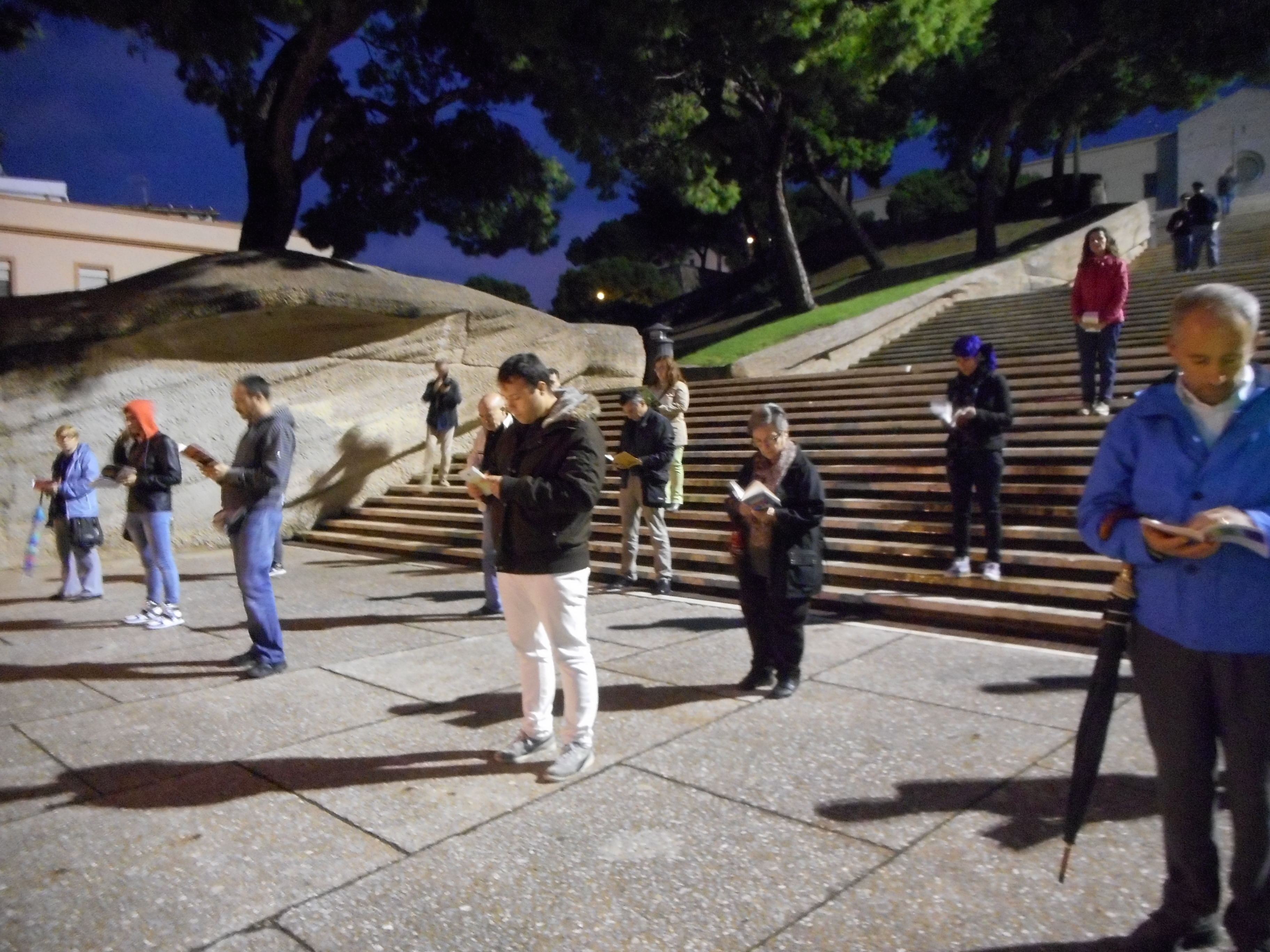 Sentinelle in Piedi nella scalinata di Bonaria dimostrano contro le unioni civili.Tutti in piedi nella gradinata, rivolti verso il mare, in silenzio, le Sentinelle in Piedi hanno dimostrato stasera anche a Cagliari, come in tante altre città italiane, contro il ddl sulle cosiddette “unioni civili”. Per l’associazione spontanea si tratta di un provvedimento che equipara le unioni tra persone dello stesso sesso al matrimonio e apre alla pratica dell’utero in affitto.