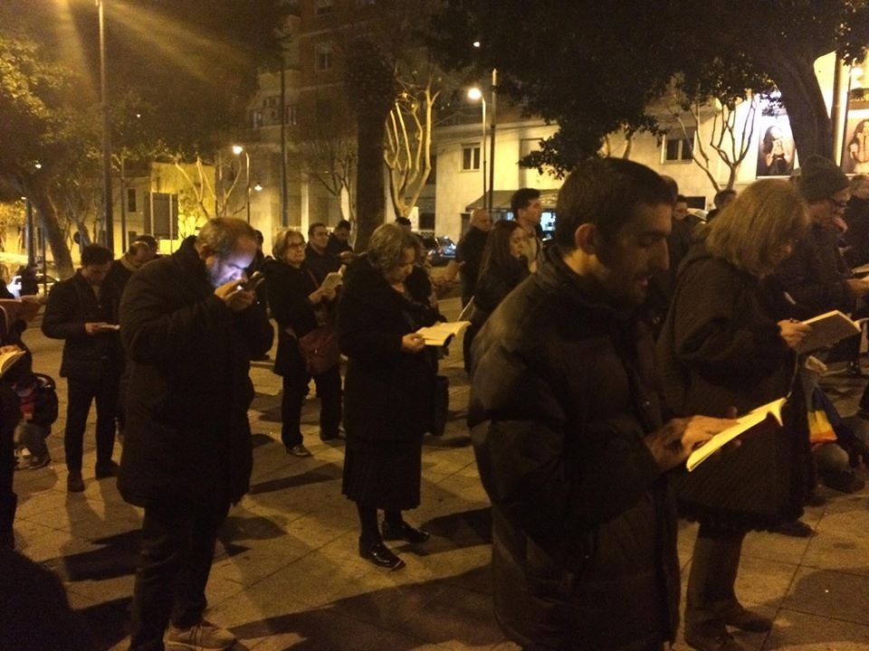 La manifestazione è durante meno di un’ora. Nonostante le contestazioni, non gradite dalle sentinelle, la lettura è andata avanti. A conclusione dell’incontro, per rendere pubblico il loro pensiero, i manifestanti silenziosi si sono riuniti in cerchio richiamati dall’organizzatore Emilio Ghiani che ha letto a voce alta i motivi della protesta. ” La veglia è stata organizzata contro l’approvazione del disegno di legge Cirinná che potrebbe legalizzare le unioni civili”, afferma Ghiani.