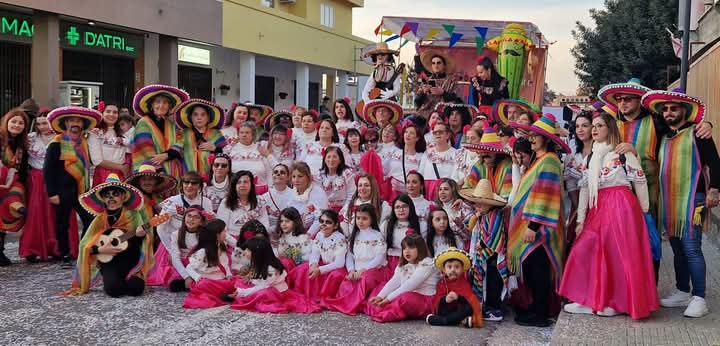 “Al termine della sfilata proseguiremo la festa in piazzetta, tra musica e animazione per i più piccoli, dove saremo ben lieti di offrire le zeppole a tutti i partecipanti”. Nella foto, i Messicani, (Pro Dolia) che si sono aggiudicati il 3° posto nella categoria gruppi nel carnevale di Dolianova “che con 70 figuranti hanno colorato e danzato per le vie del paese” una settimana fa.