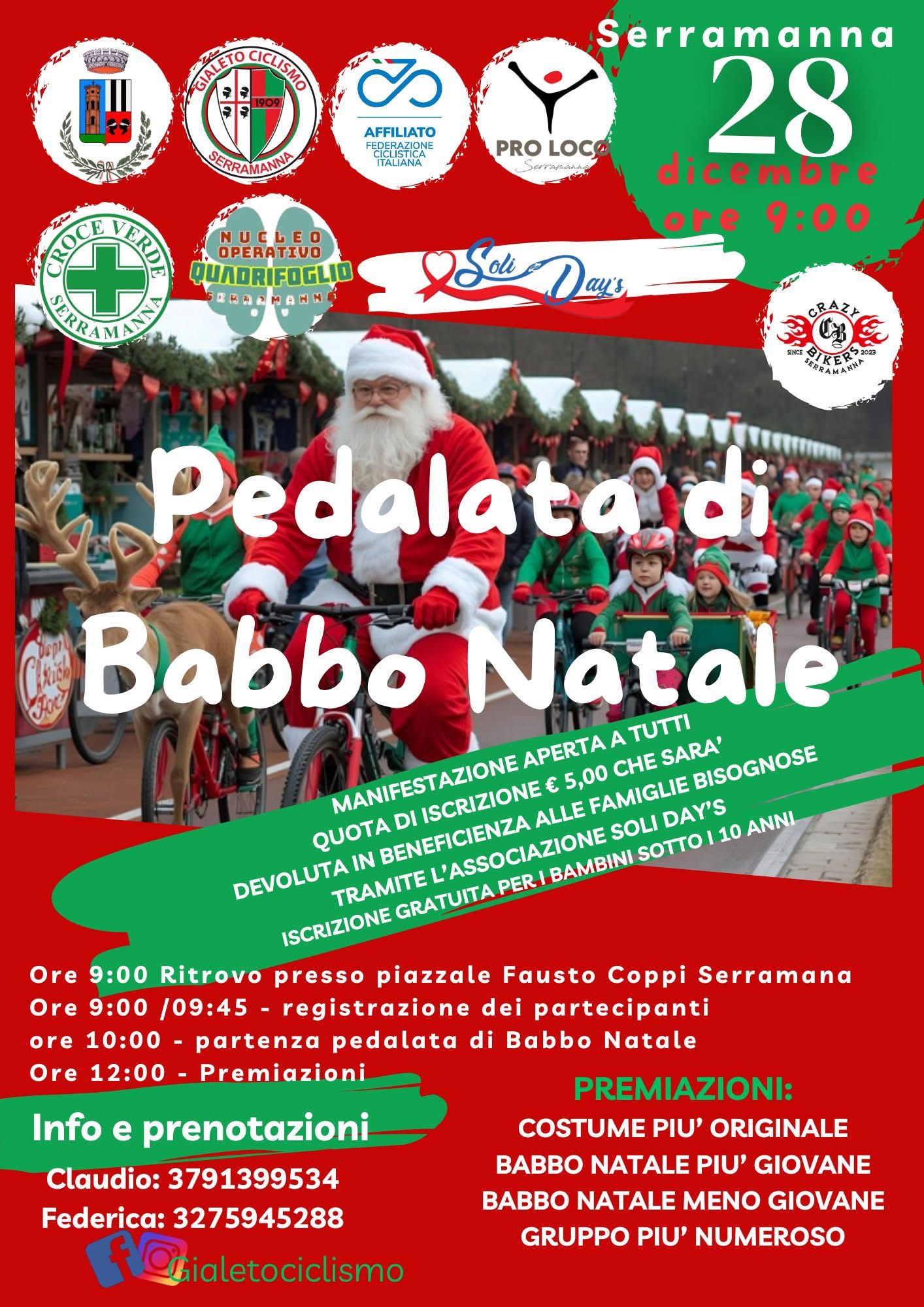 Il 28 dicembre alle 9 ci sarà la “Pedalata di Babbo Natale”, l’evento solidale organizzato dallo Gialeto Ciclismo Serramanna in collaborazione con la Pro Loco, la Croce Verde, il Nucleo Operativo Quadrifoglio, Crazy Bikers e l’associazione Soli Day’s.