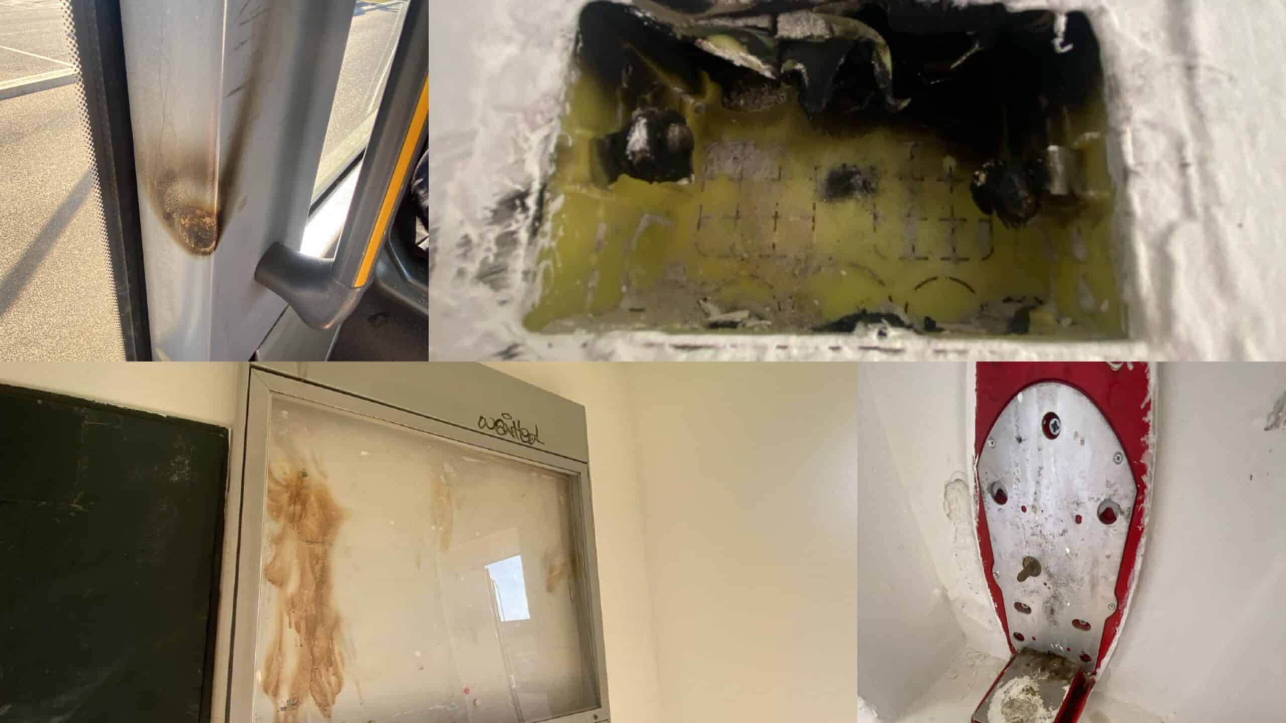 Prima tappa è stata la stazione dei treni, impossibile acquistare il ticket nella biglietteria automatica, non in funzione, il display è completamente nero, come convalidarlo è pura utopia poiché le apparecchiature o sono completamente divelte oppure a metà. Ciò che ha però richiamato l’attenzione del pendolare è stato il rogo appiccato a un interruttore: annerito, in cenere, come parte della copertura che dovrebbe proteggere gli orari cartacei dei treni. Sul bus del Ctm non va meglio: segni inequivocabili di un gioco con l’accendino tenuto acceso che ha deturpato un lato interno del bus. La riflessione del viaggiatore, P.C.: “Che senso ha rovinare o distruggere? Sono azioni vandaliche senza senso messe in atto da veri e propri incivili. È impossibile trovare una spiegazione o una giustificazione ed esprimo piena solidarietà alle aziende coinvolte e ai loro dipendenti che ogni giorno devono fare i conti con questi individui maleducati e senza rispetto verso il bene di tutti e, di conseguenza, verso gli altri viaggiatori”.