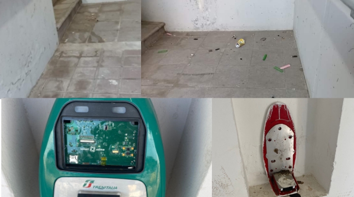Non è la prima volta, bensì, l’ennesima escalation di degrado e distruzione messa in atto da chi rispetto per le regole di convivenza civile proprio non ha. Innumerevoli le segnalazioni da parte dei cittadini che, ancora una volta, non si sottraggono dal mettere in evidenza il malumore collettivo verso una situazione inaccettabile. Il sottopasso, l’unica via per giungere dalla parte opposta ai binari è infetta: escrementi maleodoranti, che lasciano il segno nelle pareti e in terra. Cartacce, bottiglie e lattine fanno da contorno. E all’interno dei locali adibiti per ricevere i passeggeri la situazione non va meglio: impossibile obliterare, gli strumenti per la convalida del biglietto sono solo uno scheletro di circuiti e metallo inutilizzabili, poiché divelti, in parte, distrutte. Riuscire a ottenere il ticket, inoltre, è come vincere un terno al lotto: il raccogli monete è costantemente ostruito, banconote e bancomat, a volte, vengono accettati, altre volte no. Insomma, una questione che crea disagio e rabbia, un bene pubblico vandalizzato. Gli abitanti chiedono da tempo più controlli e questi, di certo, non mancano: le forze dell’ordine, spesso, presidiano la zona, gli operatori addetti al decoro sono quotidianamente all’opera ma contro l’inciviltà, anche se di pochi, nessun mezzo sembra essere efficace. Prepotenti e imperterriti i vandali continuano ad agire, soprattutto nelle ore serali e notturne.