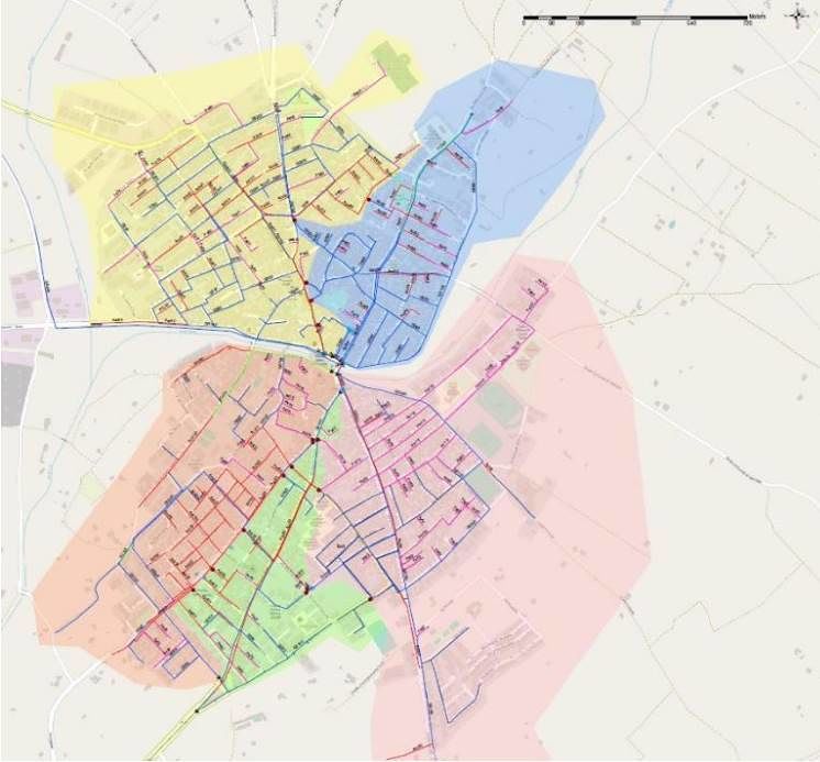 I distretti. La rete idrica cittadina sarà divisa in 5 distretti idraulici. Ognuno avrà una propria regolazione in base alle reali esigenze di portate e pressioni. Non solo: la distrettualizzazione delle reti consente, in casi di guasti, di isolare la sola zona interessata senza creare disservizi nel resto del centro abitato. Tutto questo grazie all’installazione di particolari apparecchiature la cui installazione è in corso.
