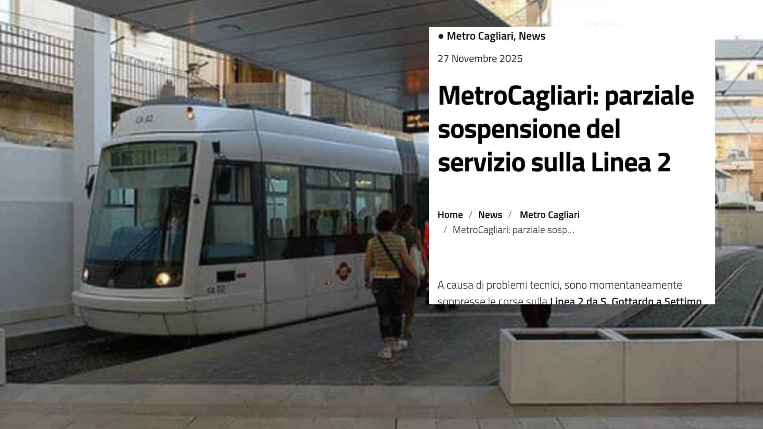 Sul sito dell’Arst si legge la comunicazione che indica “Metro Cagliari, parziale sospensione del servizio sulla linea 2”. Le cause? “Problemi tecnici”. Il problema consiste poiché pressoché nessuno ha letto l’avviso se non quando ha constatato di persona che la metro non c’era.