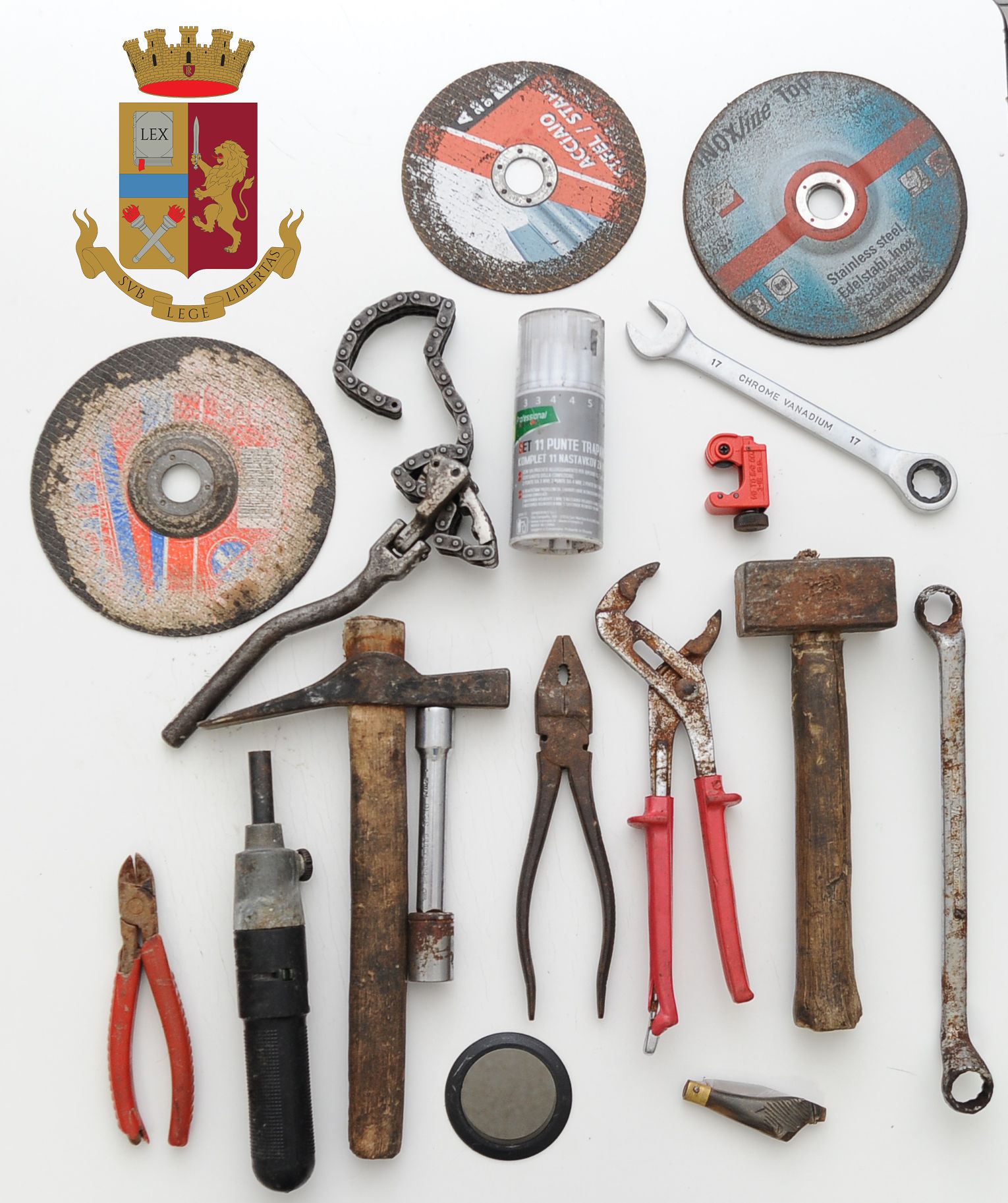 Alla richiesta di spiegazioni circa la loro presenza nei pressi del Nosocomio, hanno fornito risposte elusive e poco credibili: sarebbero giunti la mattina stessa dall’oristanese per acquistare medicinali. Sul posto sono quindi arrivate altre pattuglie e, in una via poco distante, è stato notato un furgone Fiat Scudo, di loro proprietà, all’interno del quale sono stati trovati dischi per mola per tagliare acciaio, punte di trapano, tronchesi e altri oggetti atti allo scasso.