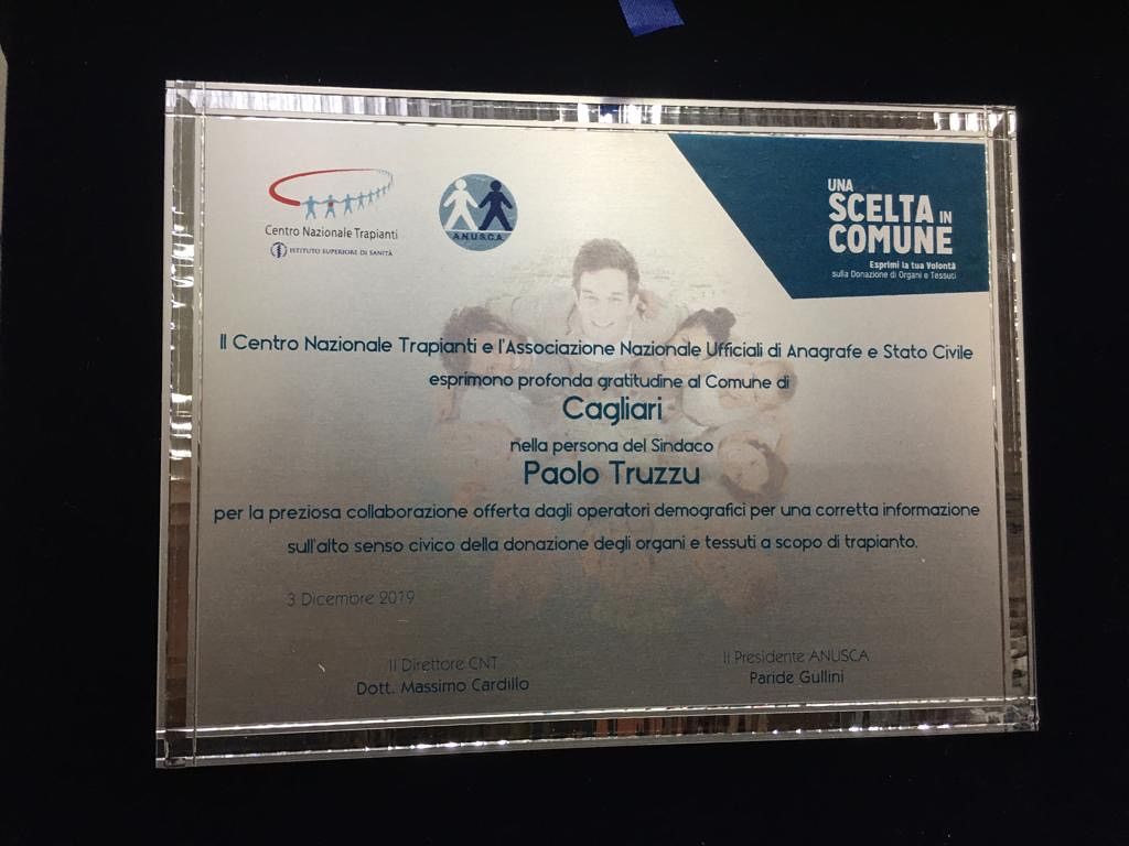 “Siamo soddisfatti e onorati di aver contribuito al successo di questo progetto. Il Comune di Cagliari ha aderito all’iniziativa del Centro Nazionale Trapianti fin dal 2014. E fin da subito i cittadini cagliaritani si sono resi non solo disponibili, ma hanno dimostrato un grande senso di civiltà e grande senso di solidarietà e generosità”, ha commentato l’assessore degli Affari generali Rita Dedola.