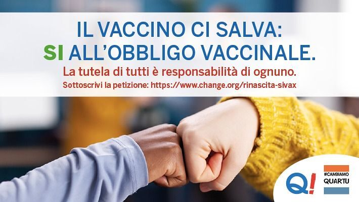 Il vaccino ci salva: Sì all’obbligo vaccinale. Con questo slogan debutta oggi sulla nota piattaforma Change.org la petizione pubblica annunciata nei giorni scorsi dal Sindaco di Quartu Sant’Elena Graziano Milia e dalle associazioni Rinascita, vicina alla maggioranza in Consiglio Comunale, e Cambiamo Quartu, di area centro-sinistra.